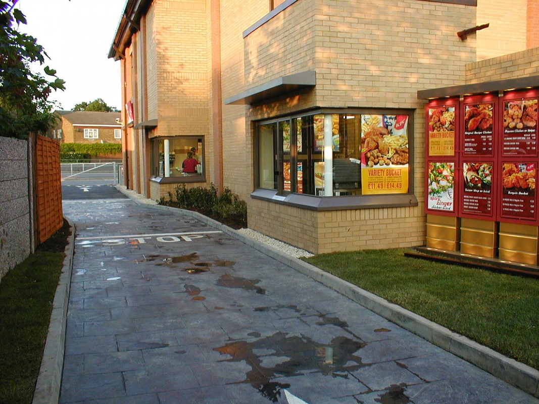 The speed of installation , we know , is critical in the larger projects and this is why we have been chosen so often in the past. We have many commercial examples of our work around the United Kingdom ranging from housing estates to theme parks, Macdonalds, KFC’s, test tracks for Aston Martin, Land Rover and Jaguar, petrol stations, schools, promenades, hotels, whiskey distilleries, nursing homes, restaurants and public houses. Because of our speed of installation we have laid the streets and floors in major blockbuster movie sets.